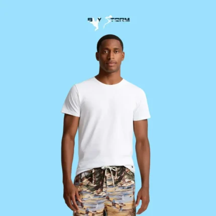 Men’s White Crew Neck T-Shirt with Beach Print Swim Shorts – Summer Essentials Set