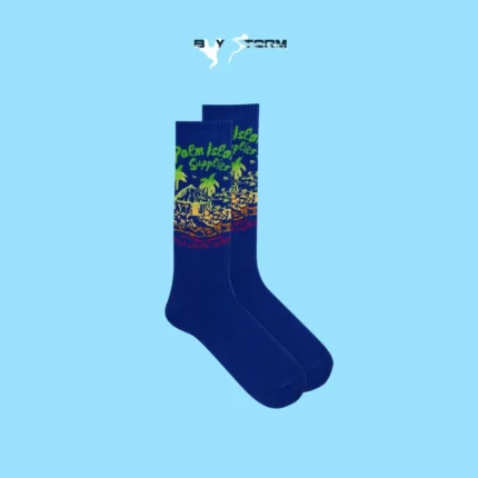 Tropical Island Theme Crew Socks – Surf & Palm Tree Graphic Socks