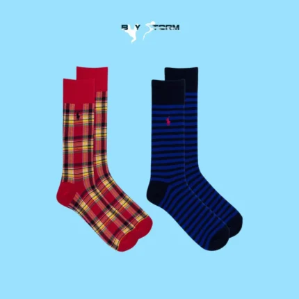 Men’s Plaid & Striped Crew Socks – 2-Pack Casual Dress Socks Set