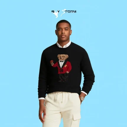 Men’s Bear Knit Sweater – Casual Crewneck Pullover