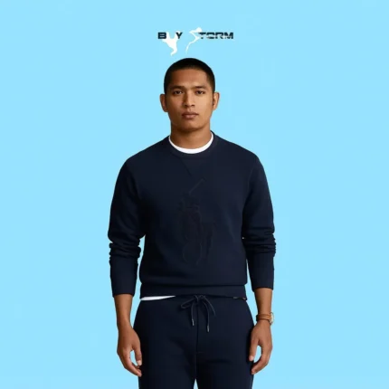 Men’s Embossed Polo Sweatshirt – Navy Blue