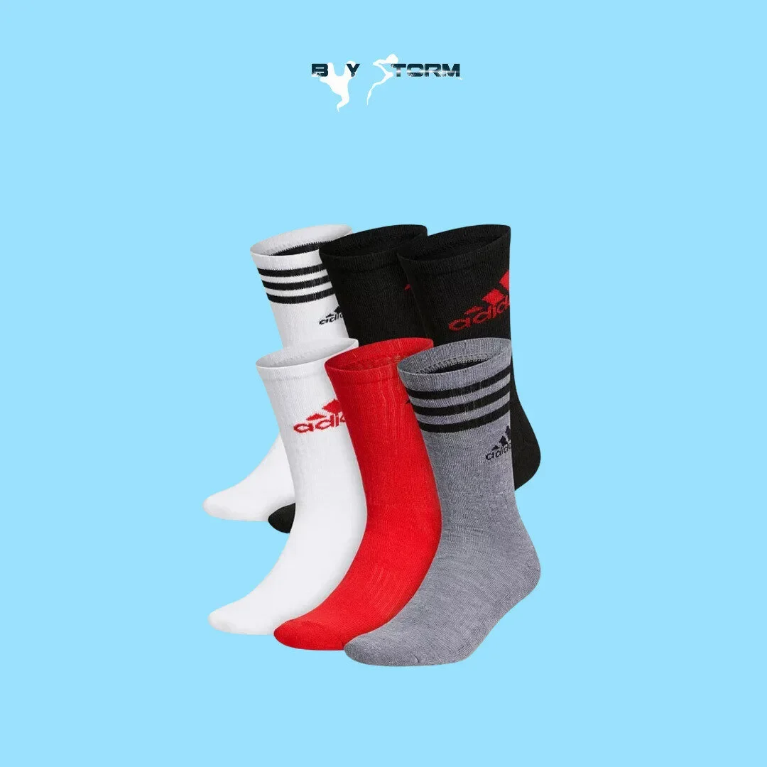 Stay fresh and active with this 5-pack of Adidas-inspired crew socks in black, white, red, and gray colorways. Featuring the iconic 3-stripe and logo design, these athletic socks offer comfort, breathability, and a secure fit—perfect for sports, streetwear, or everyday use.