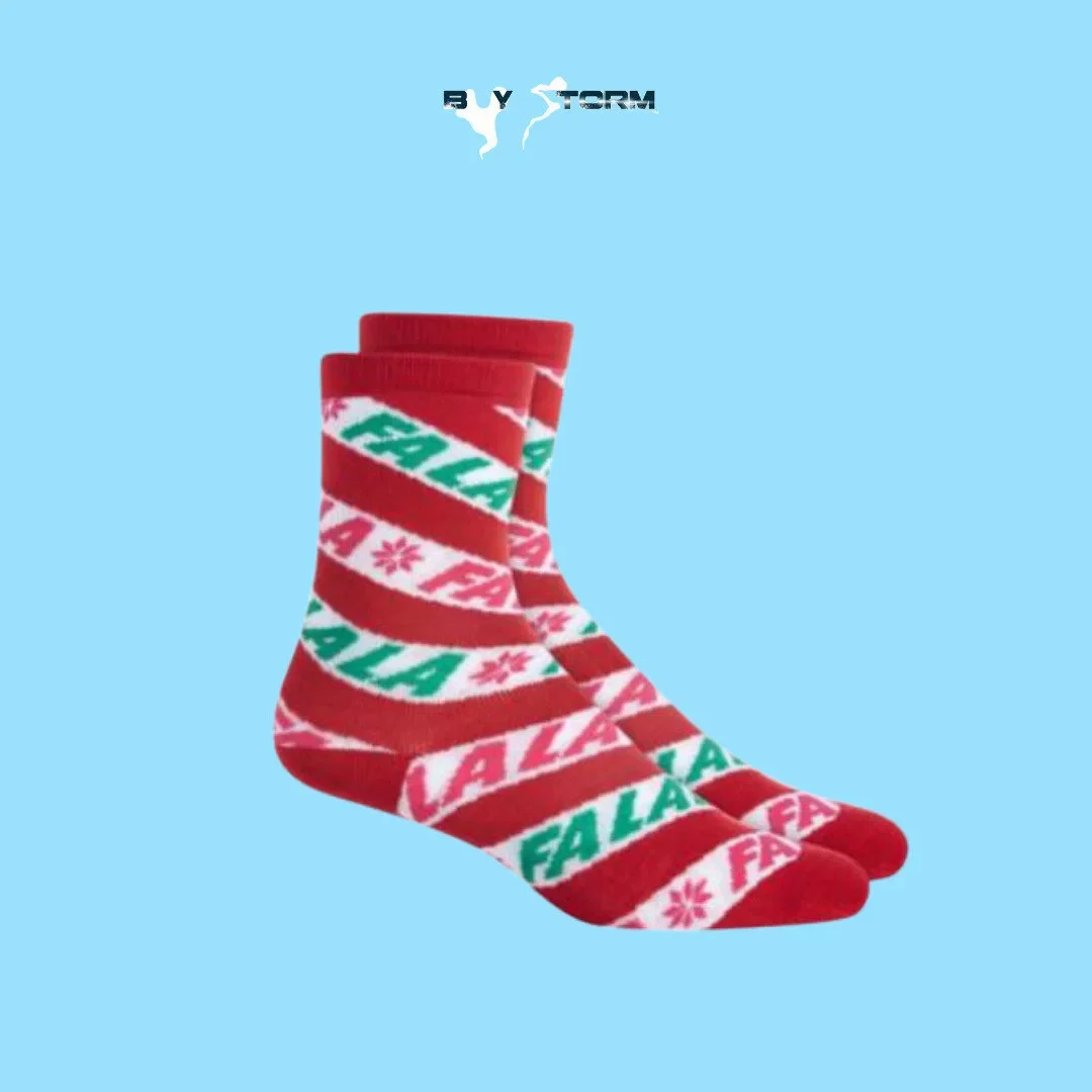 Step into the holiday spirit with these Festive “Fa La La” Christmas Socks! Featuring bold red, green, and white stripes with cheerful lettering, these cozy crew socks are perfect for Christmas parties, winter lounging, or gifting. Made from soft, stretchy fabric for all-day comfort, they add a fun and festive touch to your seasonal wardrobe. A must-have accessory for celebrating in style and warmth.