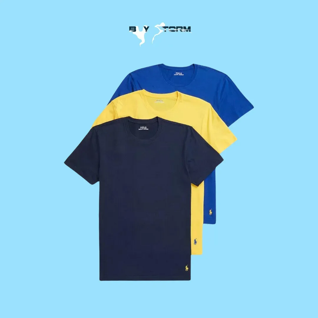 Brighten up your essentials with this vibrant 3-pack of men’s crew neck t-shirts in navy, yellow, and royal blue. Made from premium cotton for a soft, breathable feel, each tee features a modern fit and embroidered logo detail for a clean, casual finish. Perfect for everyday wear or layering.