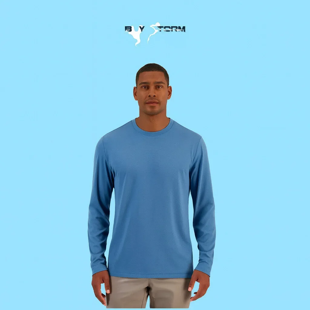 Keep it clean and casual with this sky blue long sleeve crewneck tee. Made from soft, breathable fabric, it’s perfect for layering or wearing solo for a simple, polished everyday look.