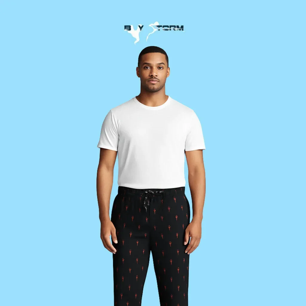 Unwind in comfort with these men’s printed lounge pants, featuring an all-over logo pattern for a bold yet relaxed look. Made from ultra-soft cotton fabric, these pajama bottoms offer a relaxed fit with an elastic waistband for easy movement and all-day comfort. Perfect for sleep, lounging, or lazy weekends, these pants combine comfort, style, and breathable ease—an essential for any laid-back wardrobe.