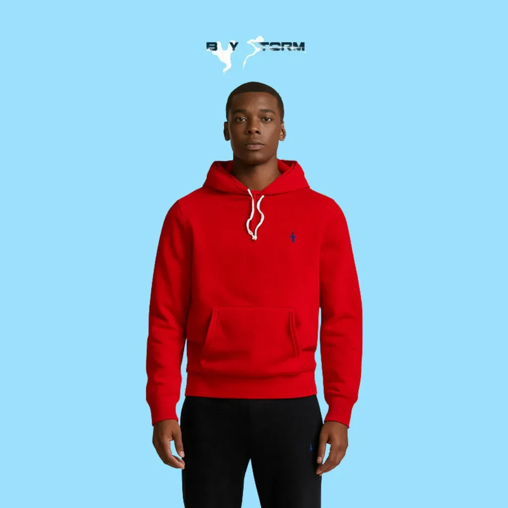 Stay warm in timeless style with this men’s pullover hoodie, made from soft fleece fabric for unbeatable comfort. Featuring a classic drawstring hood, kangaroo front pocket, ribbed cuffs, and hem, this sweatshirt offers a relaxed fit perfect for layering. The signature embroidered logo adds a polished touch, making it ideal for casual wear, lounging, or post-workout style. A versatile must-have for your everyday wardrobe.