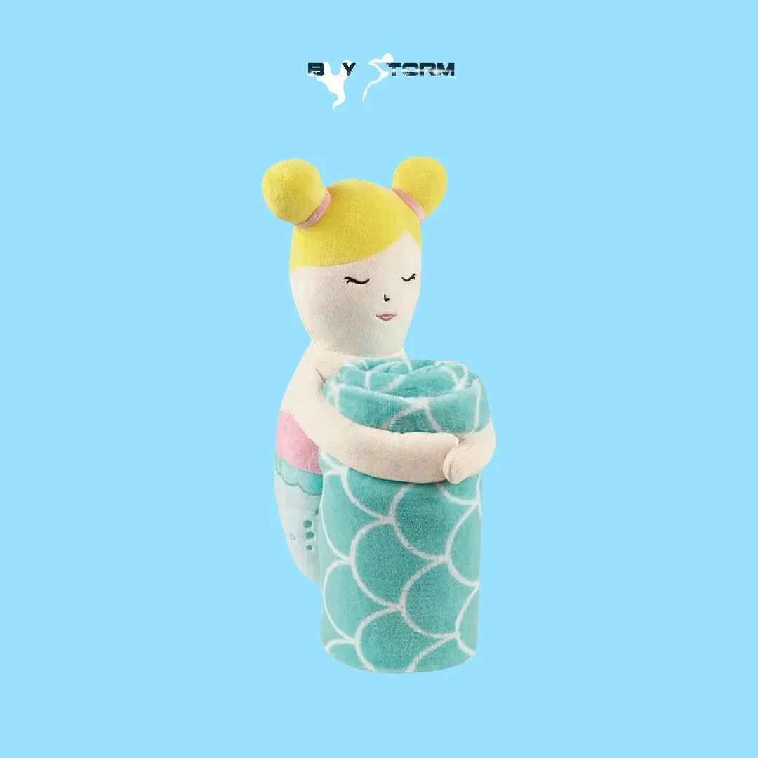 Make bedtime magical with this soft mermaid plush doll cuddling a sea-inspired fleece blanket. Featuring a whimsical mermaid design and ocean-scale print, this adorable set offers both comfort and imaginative play. A perfect gift for kids who love mermaids, making it ideal for sleepovers, naps, or themed bedrooms.