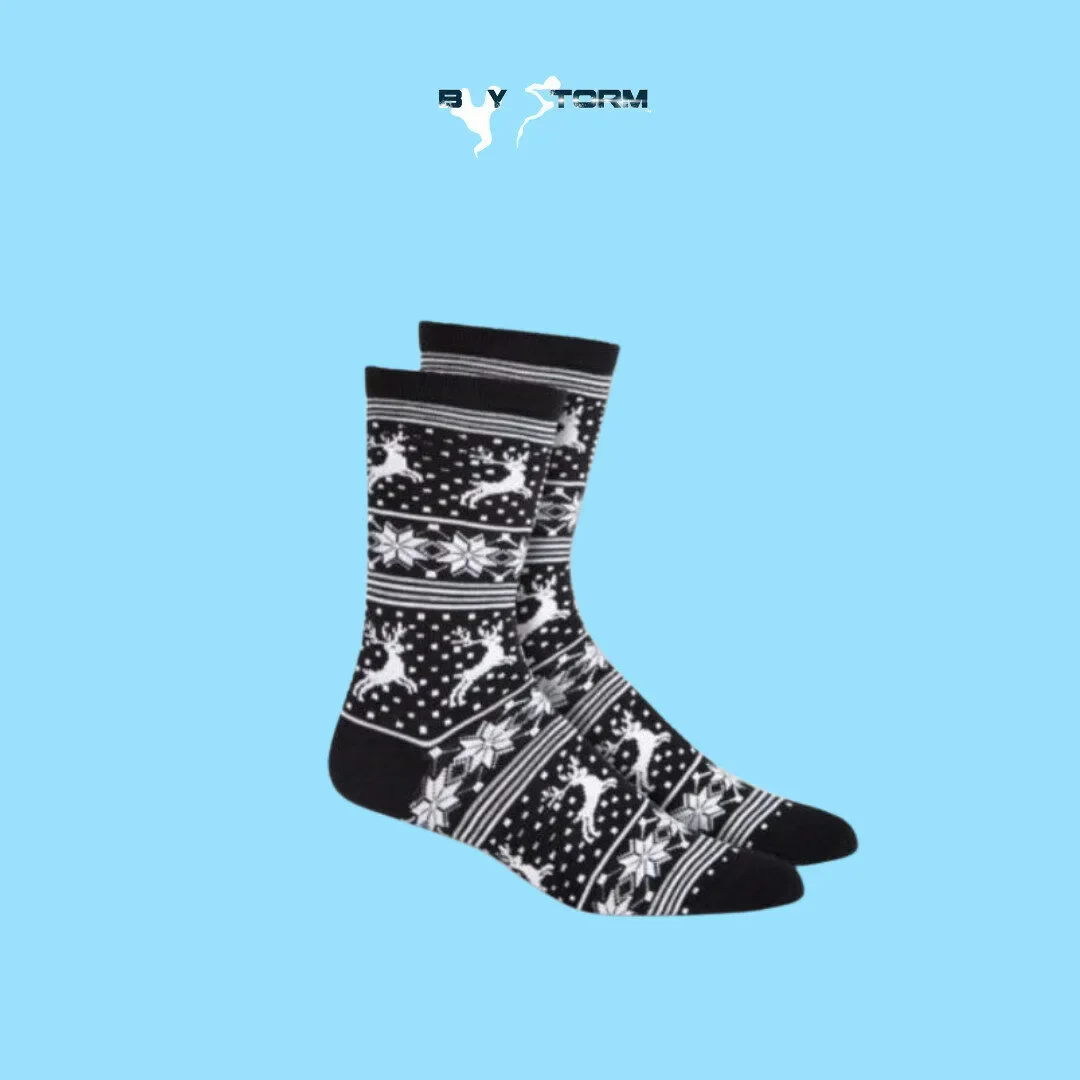 Stay cozy and festive with these Winter Reindeer Knit Socks, designed with classic snowflake and deer patterns. These soft, breathable crew socks are perfect for cold weather, holiday outfits, or lounging at home. Made with comfortable stretch fabric, they fit snugly while keeping your feet warm and stylish. Ideal as a Christmas gift or winter wardrobe essential for men and women.