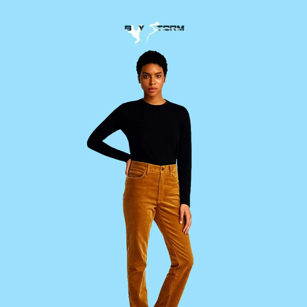 Upgrade your seasonal wardrobe with these women’s high-waist corduroy pants in a straight-leg cut. Crafted from plush, durable fabric, they offer warmth, structure, and timeless style. Ideal for both workdays and weekends, these pants pair effortlessly with fitted tops or cozy knits for a polished, on-trend look.