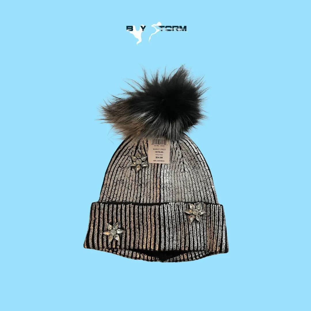 Shine bright this winter with this metallic knit beanie featuring a luxe faux fur pom-pom and dazzling crystal star embellishments. Designed for warmth and standout style, this women’s winter hat adds a glamorous touch to cold-weather outfits. Perfect for holiday events, evening strolls, or chic everyday wear.
